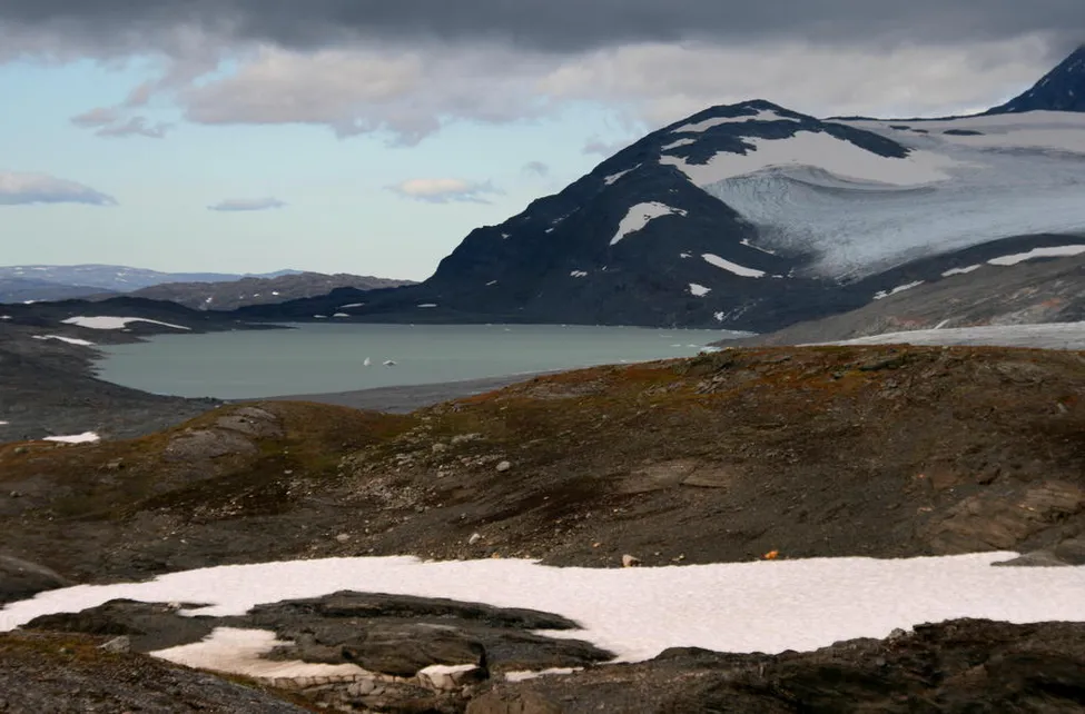 Salajiekna kalvar i sjön - notera isblocken som flyter i mitten!