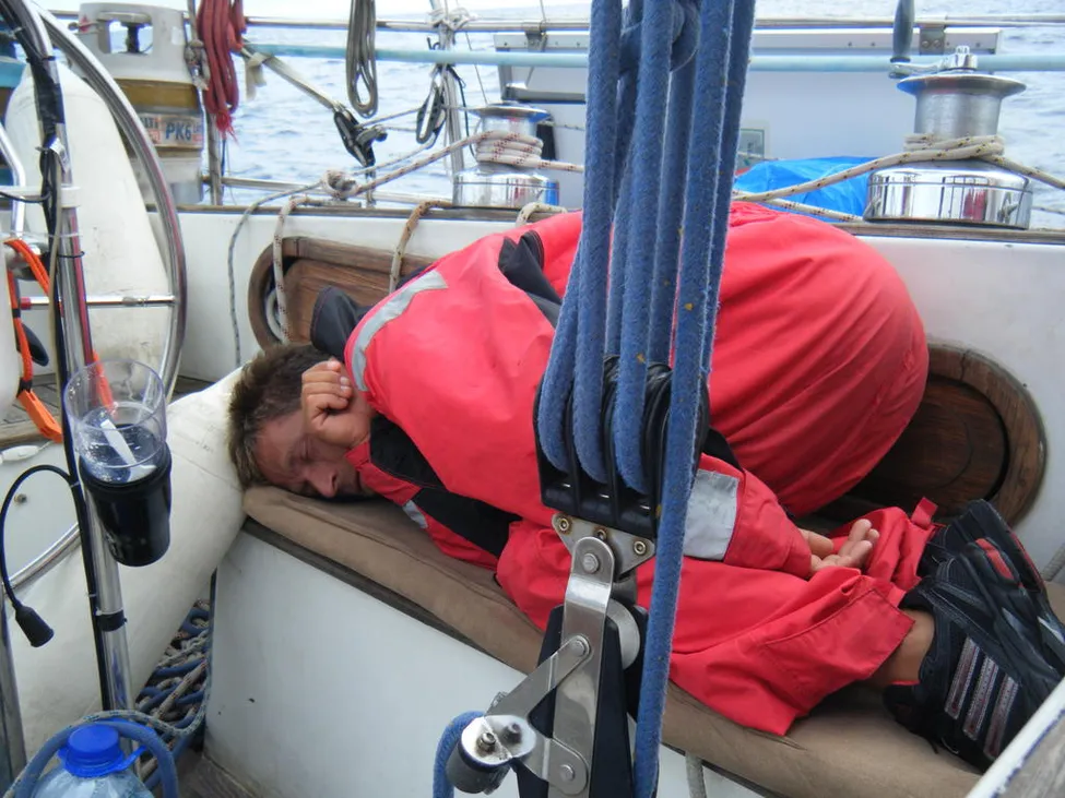 Han kommer aldrig att mönstra på en båt igen utan att kolla kojernas längd i förväg ;-)