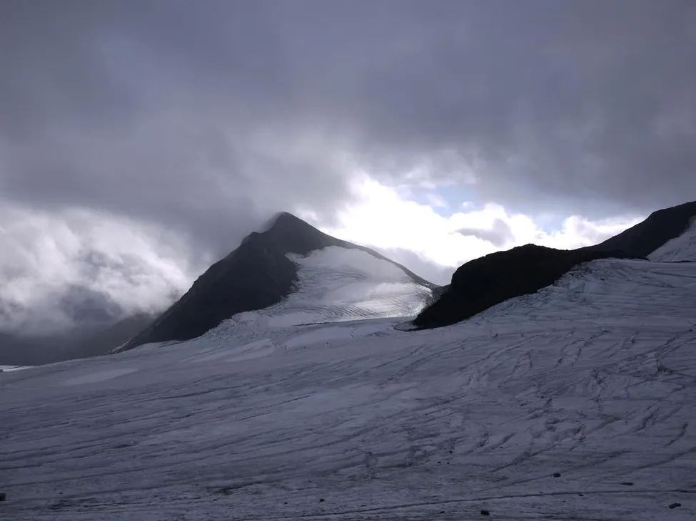 Gick upp över Alep Sarekjiegna som var barsmält och tog stortoppen, sedan ner över Mihkkajiegna. Fick gå över snö ca 100-150 m som jag vet sedan tidigare är sprickrikt. Gick ensam och fick pika mig fram för att vara säker. Passerade ändå inte glaciärkrönet, utan valde att gå över stenkrönet för att kringå värsta snö och sprickområdet.