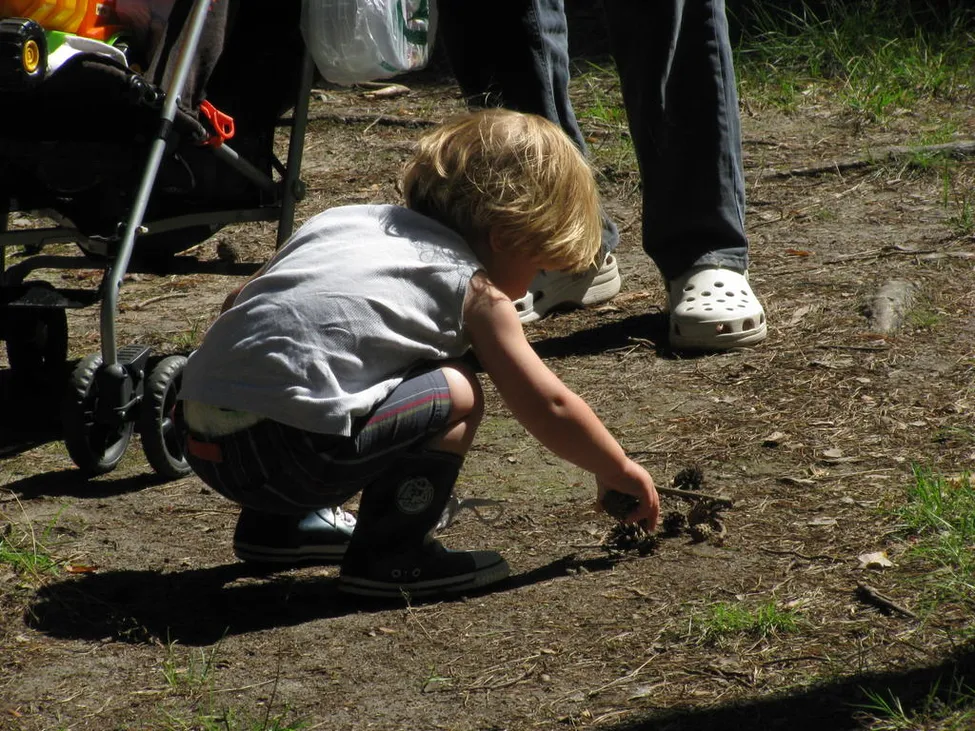 Åh, en bild som värmer hjärtat! Så charmigt fin på upptäcktsfärd! (Känner såklart igen min lille grabb som delar intresset för kottar, sniglar, ekollon och - ja, you name it! :)
