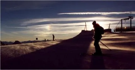 Skidåkning i Zematt/Cervinia... och horisonten är inte sned. Däremot brukar skidbackar vara det.