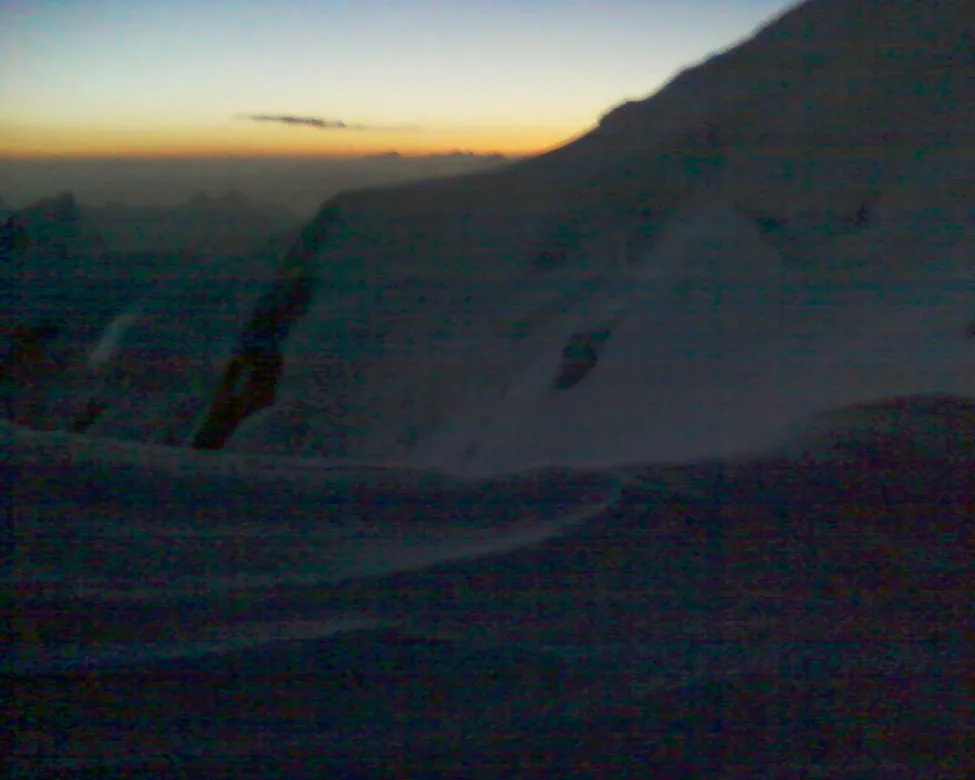 gryningen kommer vid Goutertoppen, utsikt mot Aig Midi