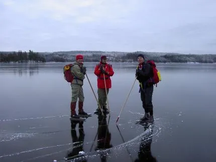 Premiärturen 14 dec på blankis med färdledare Stefan Wernvik i mitten