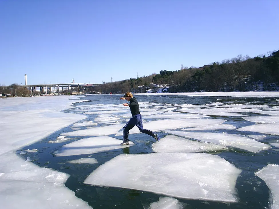 Isflakshoppning i Stockholm. Skanstullsbron i bakgrunden. Faktiskt enda gången som jag fått bada av alla gånger jag roat mig med detta.