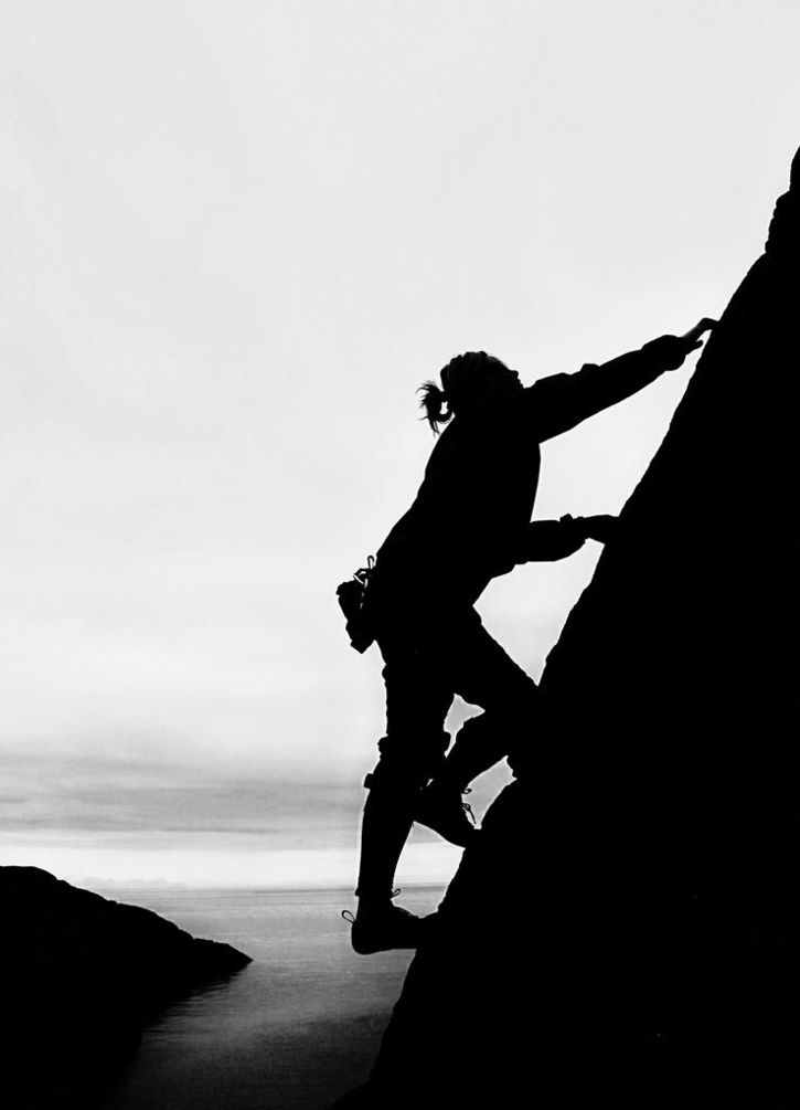 Lofoten roadtrip. Pia känner på berget i Kalle