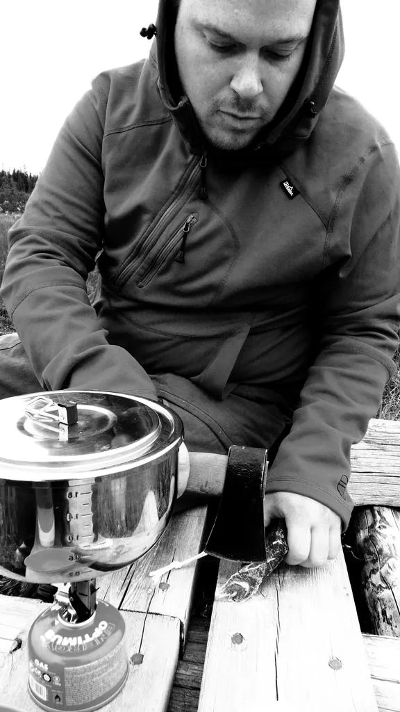 Vi glömde knivarna(!), men tur yxan var med till torrköttet ;)