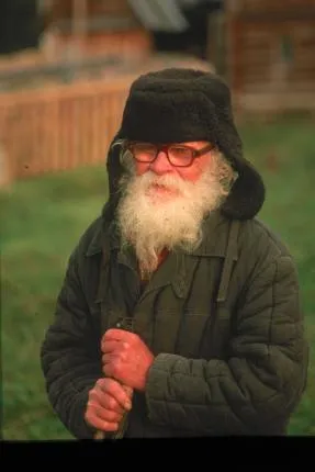 En äldre man som flyttat ut på den ryska taigan
