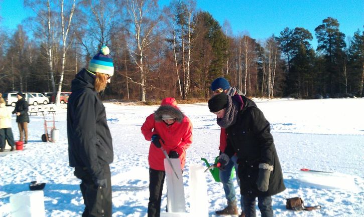 I år gästades Hällefors av en grupp studenter som skapade broar och fyrar av is på sjön Sörälgens is.