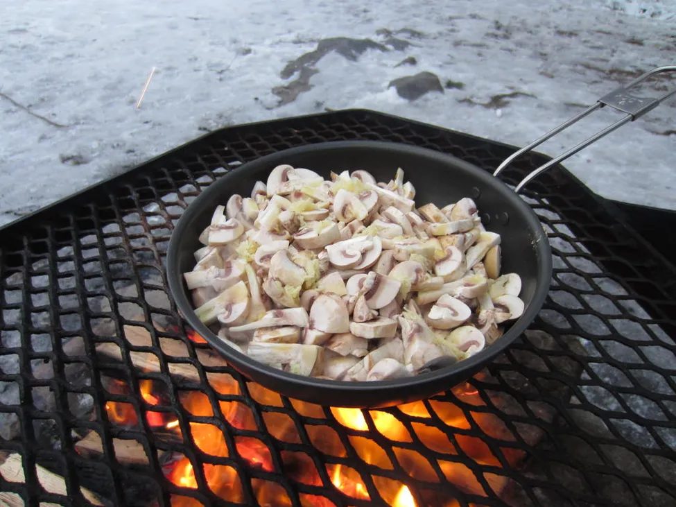 Bara skiva lite champinjoner och riv en eller två vitlöksklyftor över och stek det i olivolja. Sen lägger du i bröden och låter dem stekas i olivoljan en stund också.