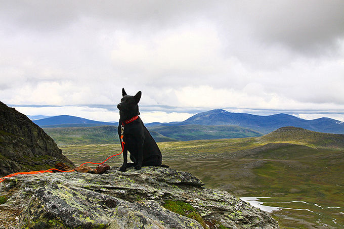 Provade att ha med hunden upp till Helags i somras. Hon tyckte det var spännande att bära klövje, jaga lämmlar och bo ett litet tält med bara husse