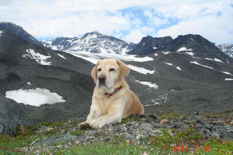 Hej Tomas. Vi hade bra tur runt massivet. Mac fick skavsår av sin ¨ryggsäck¨ så den lämnade vi kvar till Sälkastugan och på Tarfala resan fick vi bära han över stenröset. Han skall inte behöva bära mera, det skall matte och husse få ta på sig. Tyckte synd om han när han jobbade med sitt last. Var mycket trevligare för oss alla när han fick bara njuta av friheten. Varje snöfläck var det rena julafton, men djupare vad var han lite rädd för. Där fick vi hjälpa till.