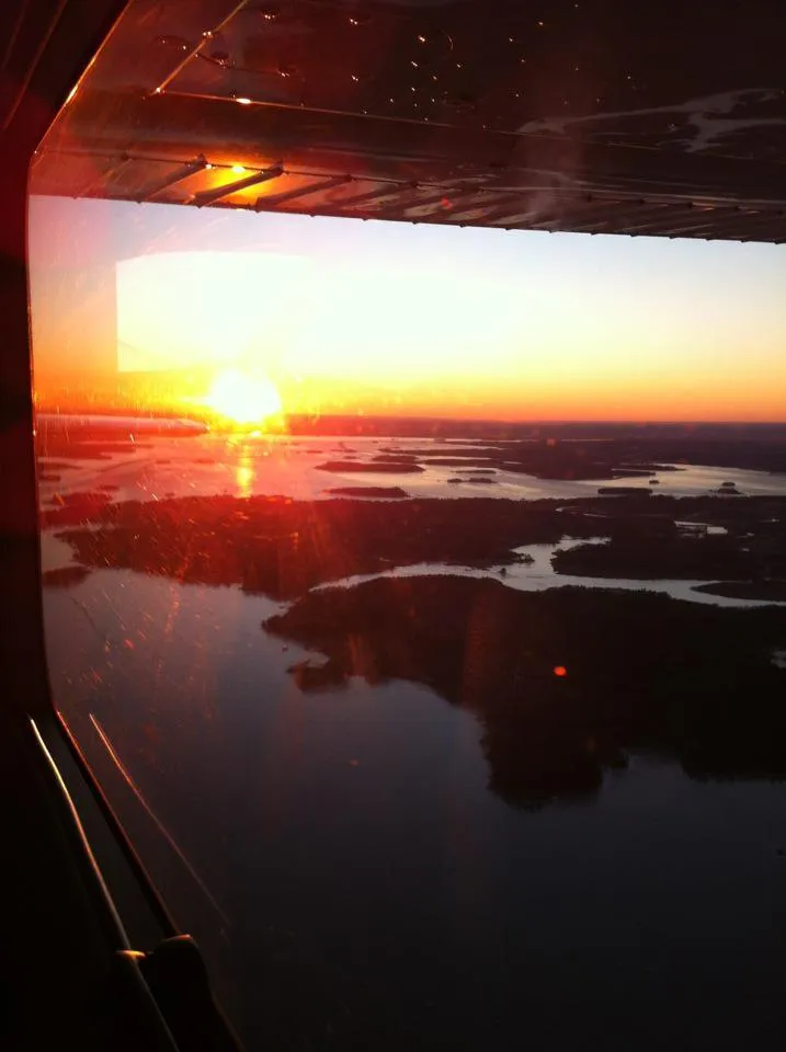 Flygning i solnedgången