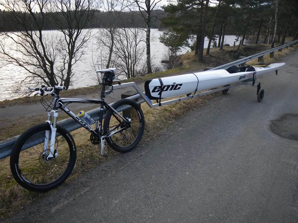 Vad säger folk du möter när du kommer cyklandes i Ursuit med surfski på släp?