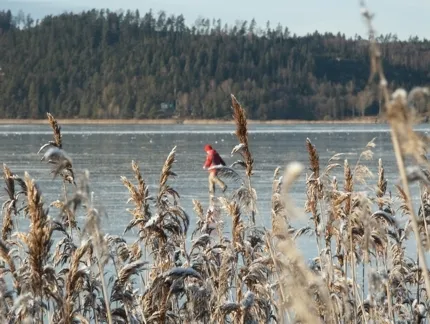 En bild som jag tog på min lillasyster när familjen var ute och promenerade på Mjörns is på julafton.