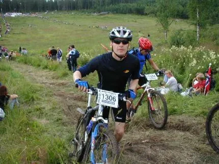 Vid andra passeringen av prästtomta under MTB vättern 2002.