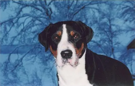 Grosser Schweizer Sennen. Bilden tagen i Virisen, Tärnaby, i 32 minusgrader.