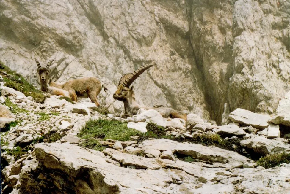 Bilden är tagen på nära håll. Stenbockarna låg kvar medan jag bytte film i kameran!