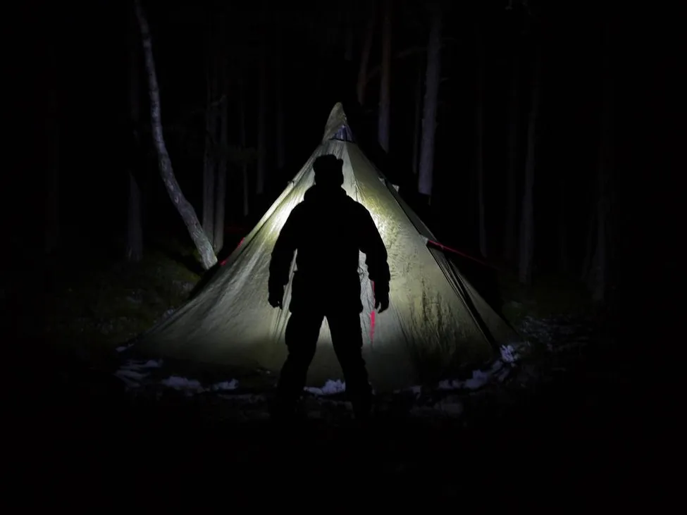 Häftig bild! Den sätter nog igång tankarna på de som är lite nojiga med att sova i tält, det fattas bara en yxa eller nåt...
