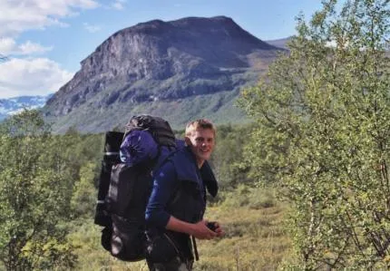 Mellan Ladtjojaure och Keb's fjällstation - mycket i ryggan - men glad ändå.