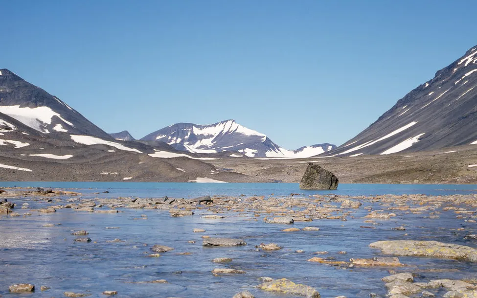 Mycket vackert med den klara himlen, snöpyntade fjäll och det blåa vattnet. Friskt!!
