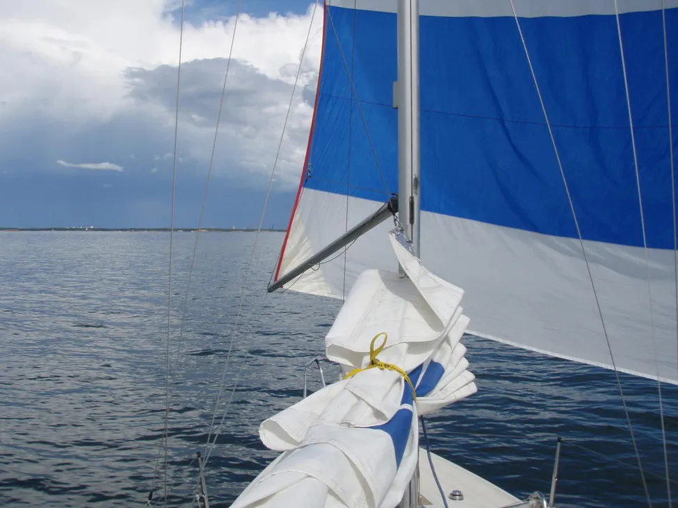 Ja, spinnaker är en tillgång - speciellt i lättvind. fast i går blev det ingen vind kvar alls till slut så jag tog ner och snurrade hem.
