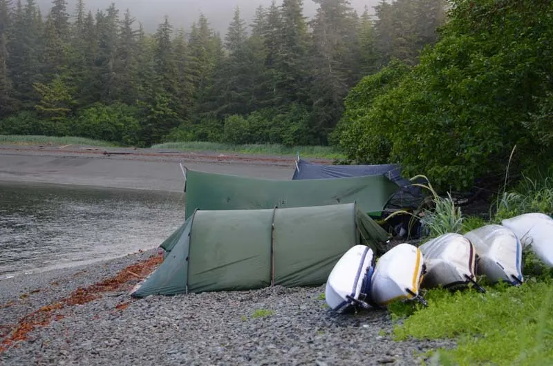 Första lägerplatsen. Hilleberg tält och Valley kajaker.