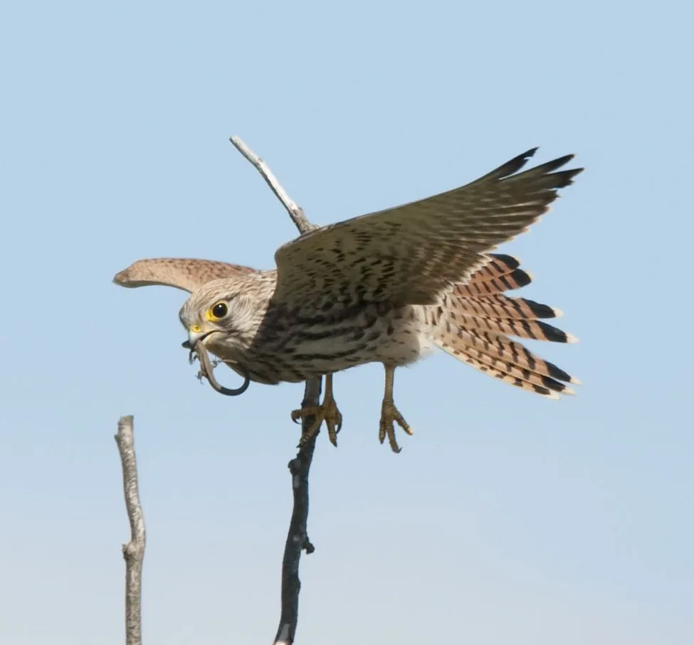 Tornfalk med ödla