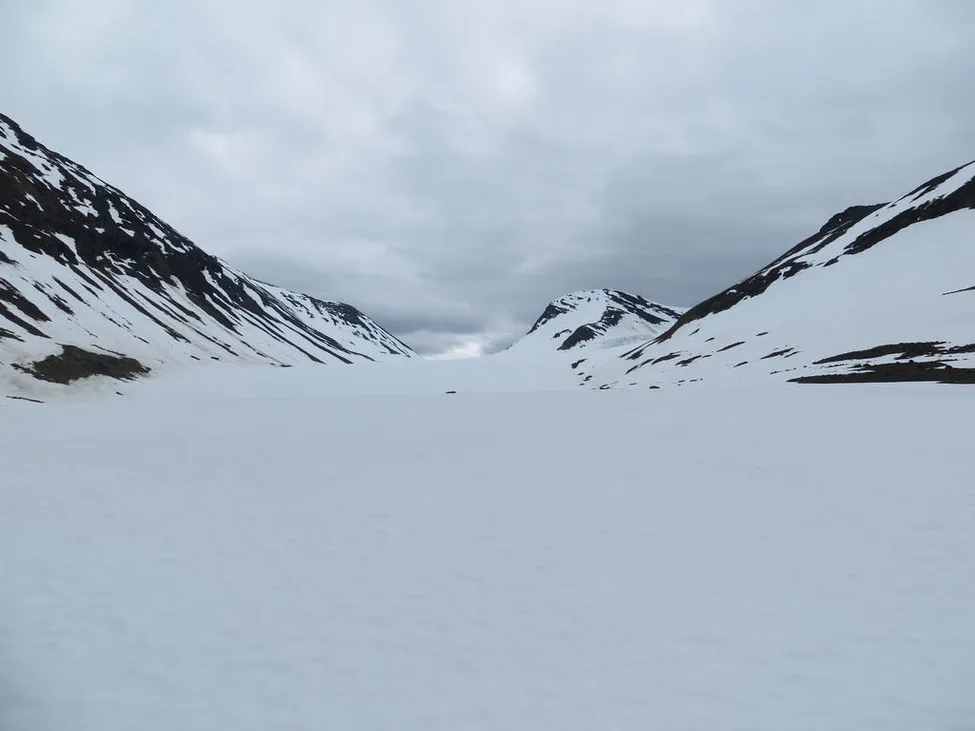 Vid passpunkten och Skårkiglaciären var det fortfarande vinter den 10 juli