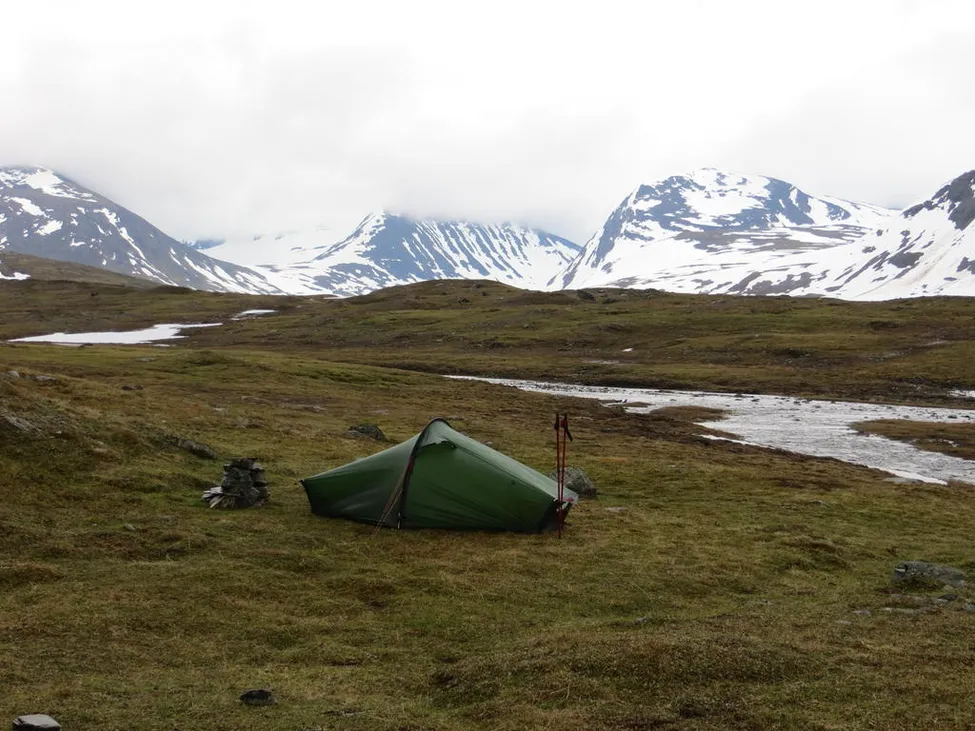 En härlig tältplats nedanför Niakvágge med utsikt mot Ruohtes.