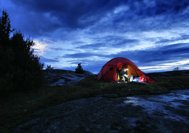 En fin bild som ger den rätta stämningen för årstiden. Dramatisk himmel som kontrast till det inbjudande trygga tältet.