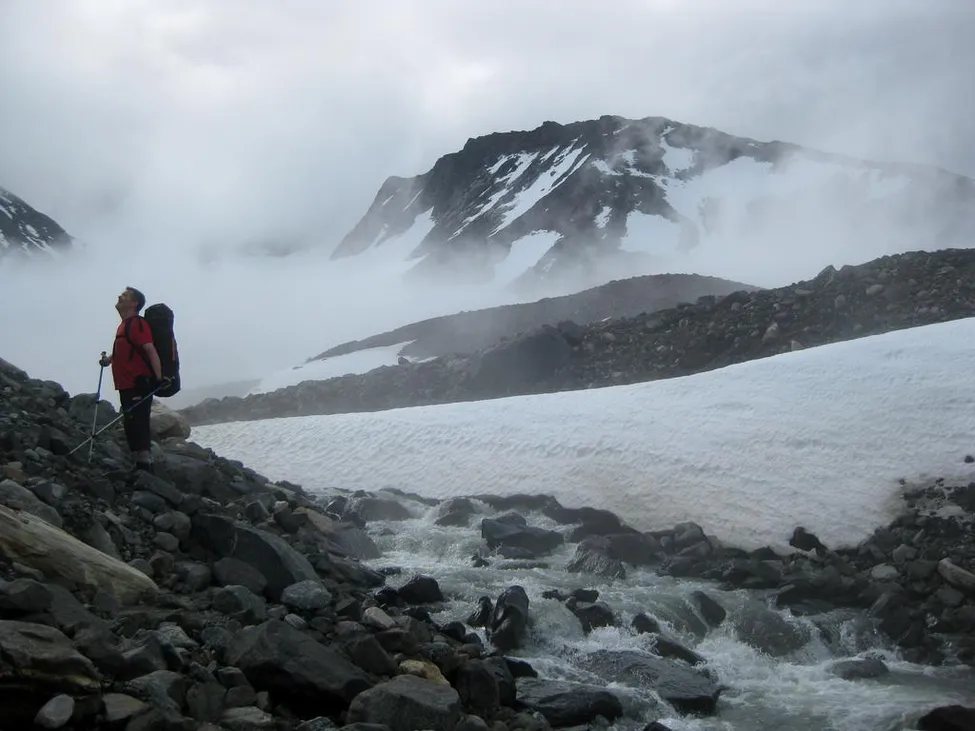 Ahkkas norra sidan 7 - Dimmorna rullar in nedanför Hyllglaciären