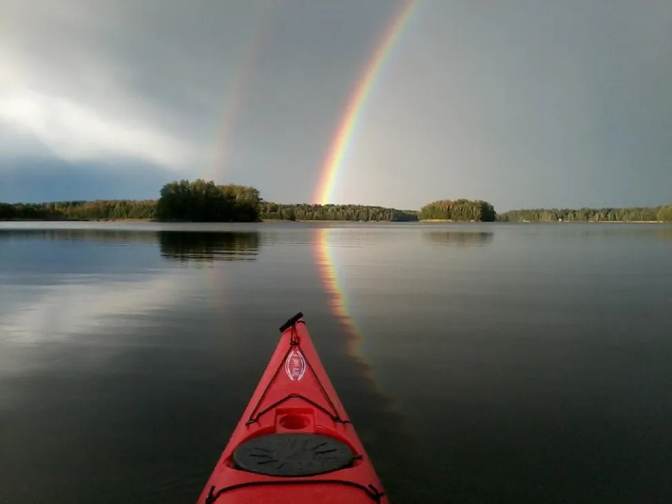 Snitsigt, med speglingen blir det en kvadrupel regnbåge. Inte illa!