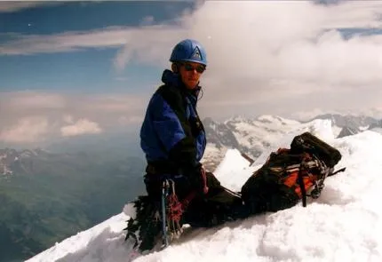 Jörgen på toppen av Eiger efter en händelselös klättring utefter normalvägen, neråt blev en annan femma!
