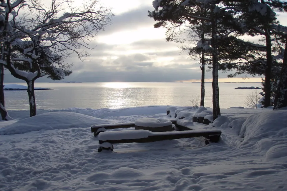 Innanför öarna är det tunn is med snö ovanpå. Riktigt farligt för då växer inte tjockleken till på ett bra sätt och snart är det jullov...