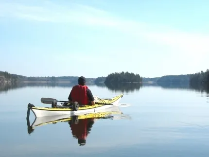 Slutmålet badet vid Edstorp skymtar i fjärran.