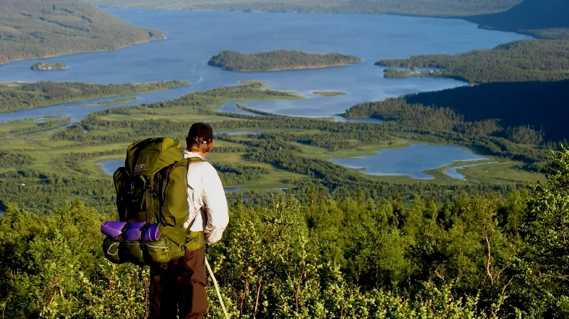Från Prinskullen. L njuter av utsikten över Kvikkjokksdeltat