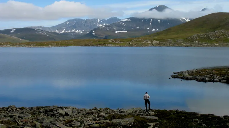 Goabrekjávrásj. Loametjåhkkå t.h. i bakgrunden.