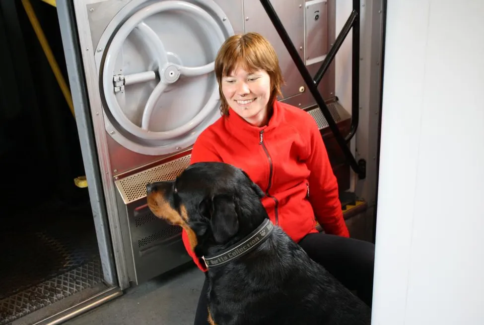 Är det fullt får man sitta på golvet. Och när folk passerar blir dom livrädda för rottweilern som 'äter barn till frukost'. Konduktören frågade faktiskt det...