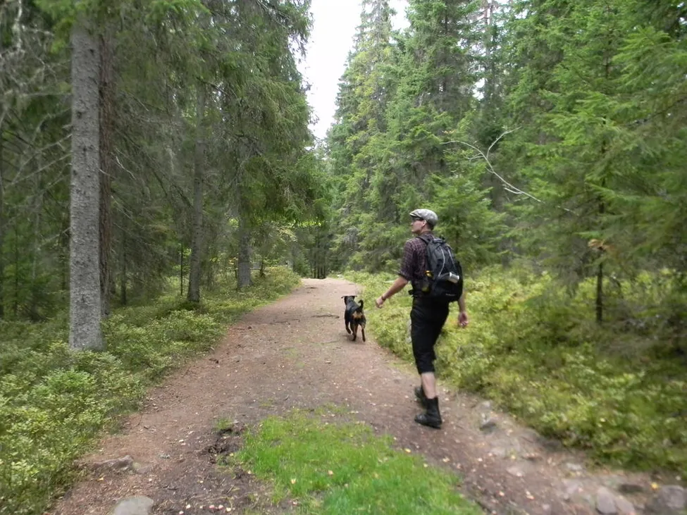 På väg ner till skuran går genom skogen. Fin och bred väg som vissa tider på året kan vara rejält blöt.