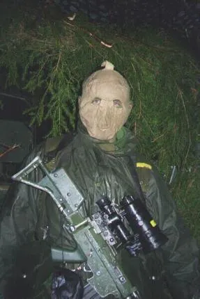 Jag med Ak5b med bildförstärkare och ansiktsskydd.