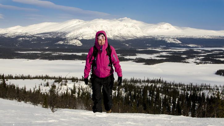 Uppe på Middagskullen. Marsfjällen i bakgrunden.