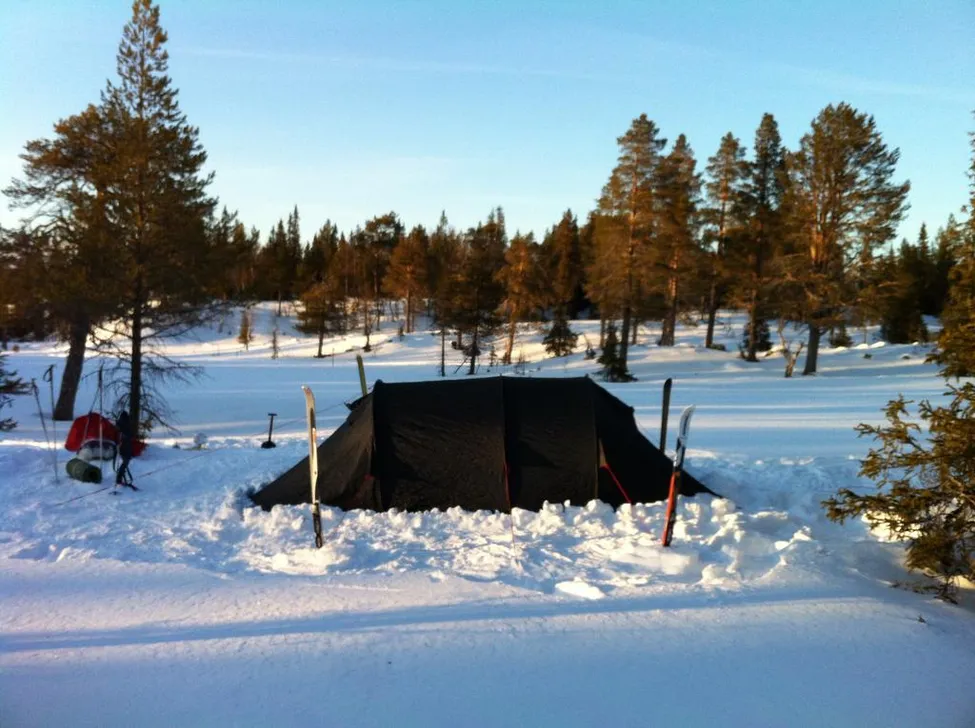 Första natten på vår första vintertältning var det 20 grader kallt. Men vi hade det bra ändå!