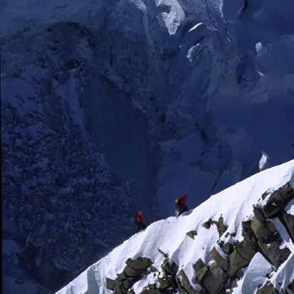 Tomas Olsson och Tormod Granheim sätter första spår på Cosmiqueryggen i Chamonix.