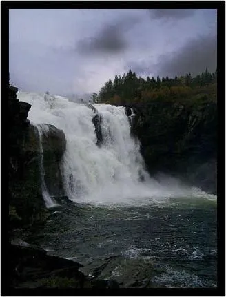 Tännforsen ett av dom största vattenfallen i Sverige. (www.laplandpostcard.com)