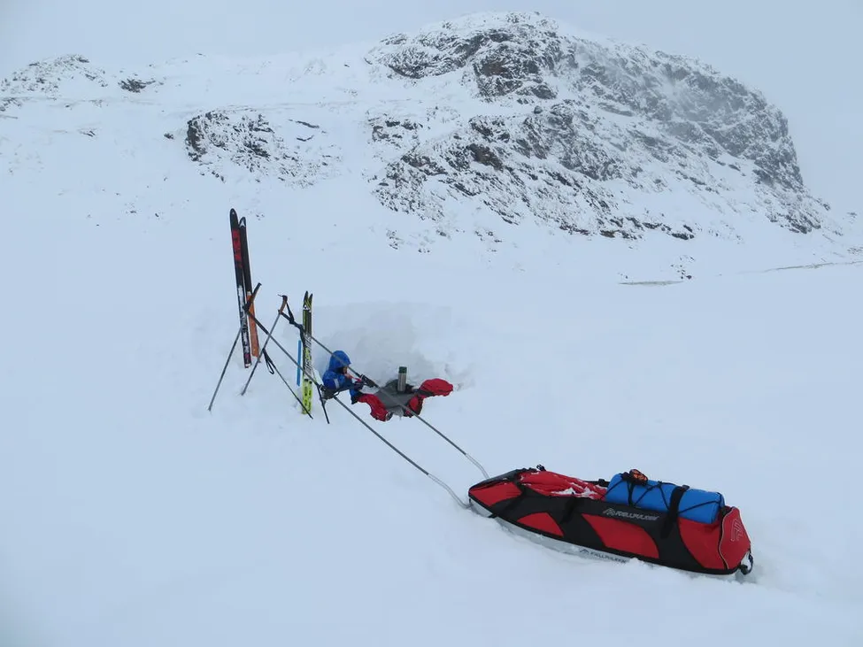 Lunch i snögrop på väg mor Tjäktjastugan