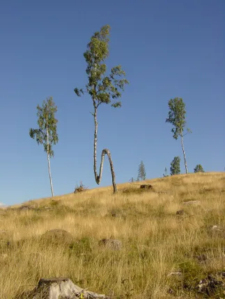 Den här märkliga björken gick inte att göra plank av, så den fick stå kvar på hygget efter den stora avverkningen.