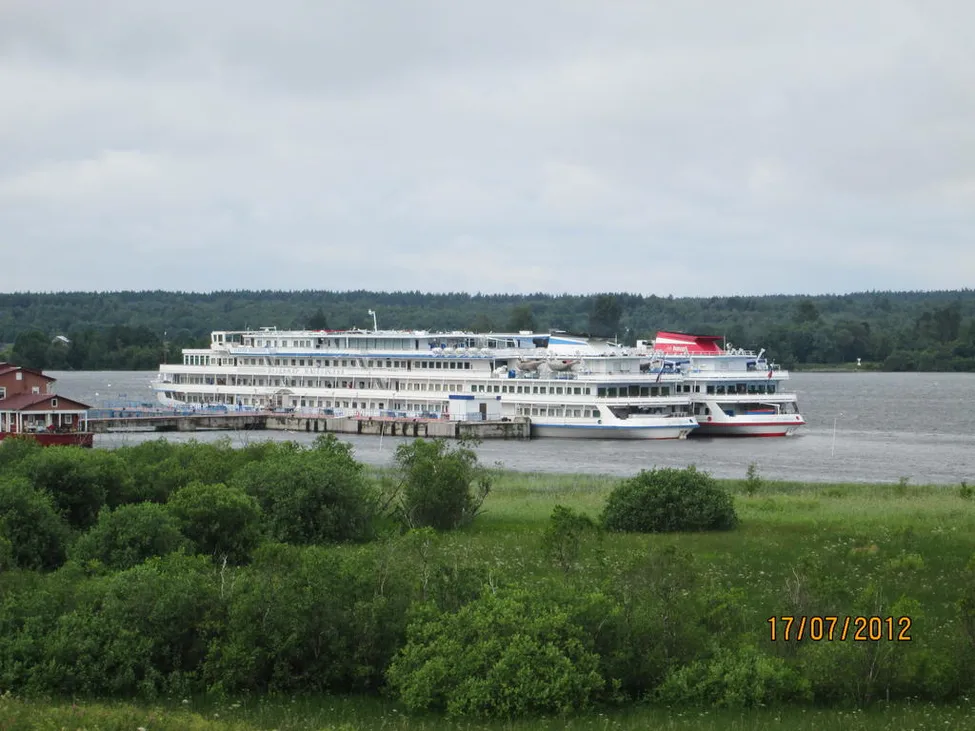 Fjärrkarelen 2012 - kyrkoön Kizhi på Onega, dessa flodbåtar hade kommit upp längs med Nevan och Svir till Onega och Kizh