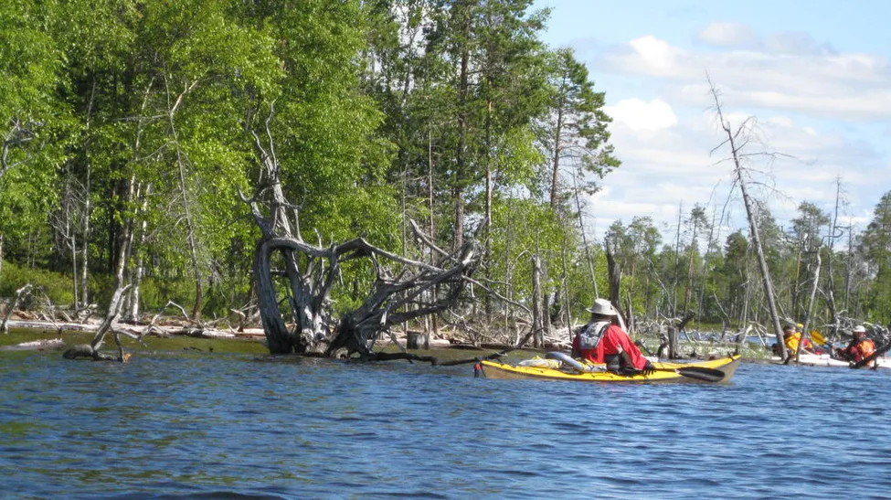 Längs med stränder fanns det rikiligt med en död strandskog, vattenytan hade höjts då ett kraftverk byggdes på Sovjet tiden och en del skog hamnade under vattnet