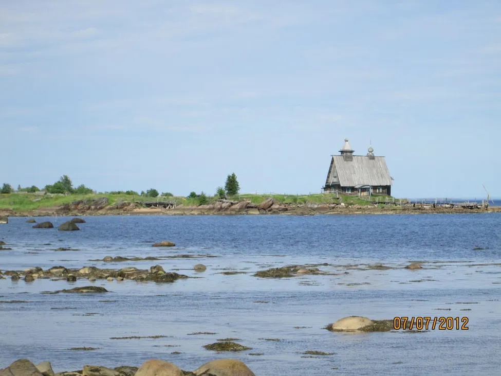 Fjärrkarelen 2012 - en kyrka vid staden Kems hamn vid Vita haveti
