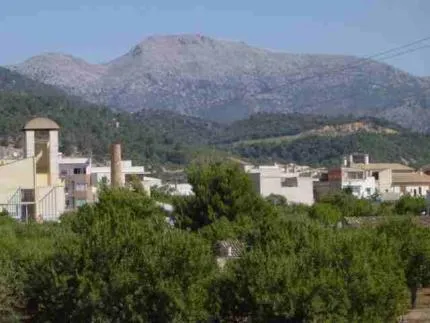 Utsikt frân kontors-fönstret: Puig de Masanella. Dárframför den gamla kol-gruvan i Lloseta